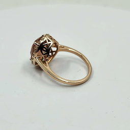 While there are other “sunstones” which are labradorite feldspars, only Oregon Sunstone is “cuprian” containing copper inclusions. It’s these microscopic bits of copper known as “schiller” that give Oregon Sunstone the shimmering effect. Sometimes it appears as a “constellation effect” as seen in the photo below on the left. Sometimes it’s called “cloud schiller” as in the photo on the right, where it looks like little wisps or clouds across the stone. Sometimes you don’t see any schiller at all in the stone, but all Oregon Sunstone contains copper which will color the stone from a champagne gold to pink, to orange to bright red to teal or green or combinations of all these colors.