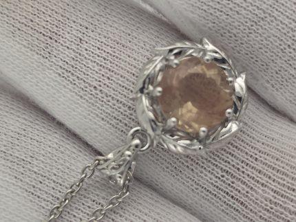 A glowing 11mm Oregon Sunstone set in sterling silver, complete with an adjustable chain that can be worn from 18 to 22 inches. This one of a kind pendant has a soft peachy glow and an elegant nature-inspired setting, making it perfect for everyday wear or gifting.