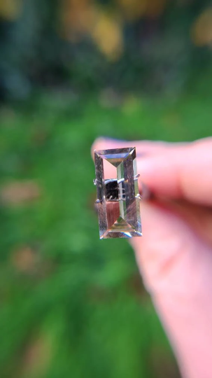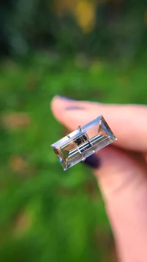 This stunning 4.27ct Oregon Sunstone features a baguette cut with glowing champagne and pale pink tones. Measuring 16x7.8mm, it's the perfect size for a bold, elegant pendant—whether worn vertically or horizontally.