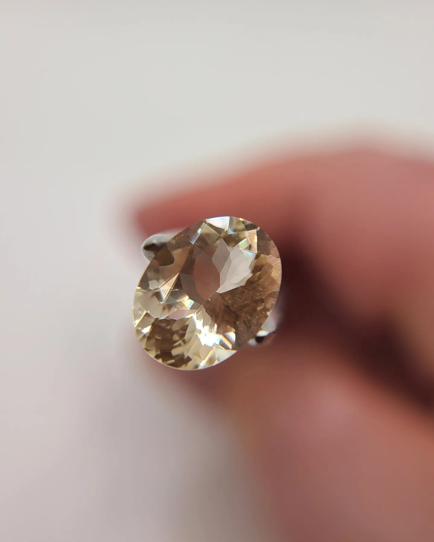 The color is primarily a warm golden champagne, but look closely and you’ll notice strong pink tints flashing through the stone as it moves in the light. This combination gives the gem a soft, elegant glow that is both eye-catching and refined.
