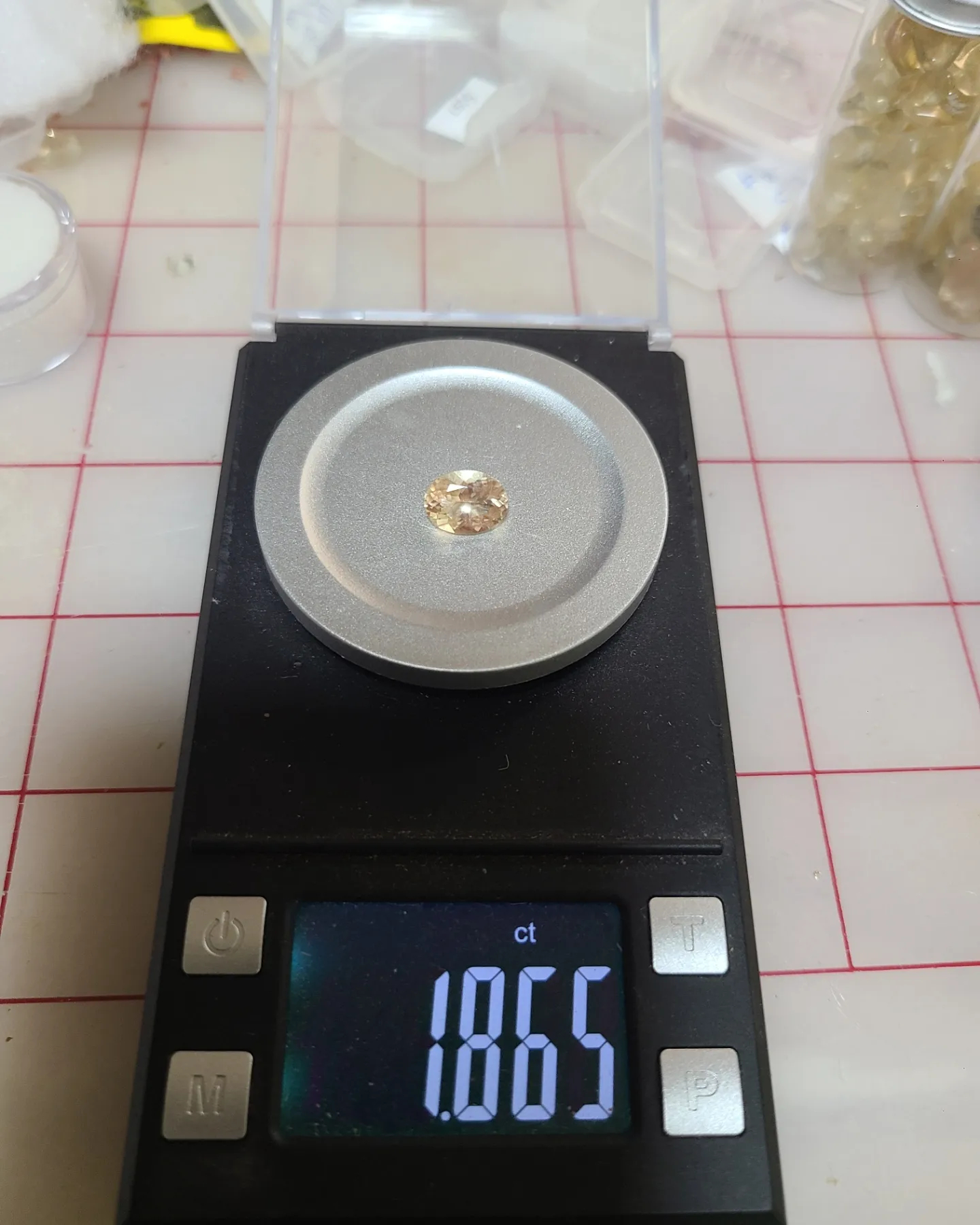 A lovely 1.86ct Oregon Sunstone in golden–champagne tones with pink tints. Perfect for a smaller pendant, a custom brooch centerpiece, or a protected ring design.