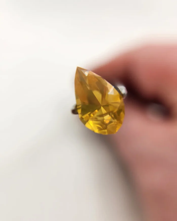 The stone is more translucent than transparent, and there are streaks of milky white mixed with the golden yellow that make this an interesting piece. It would look great set with Carnilean in my opinion and either as a ring or a pendant will look great.