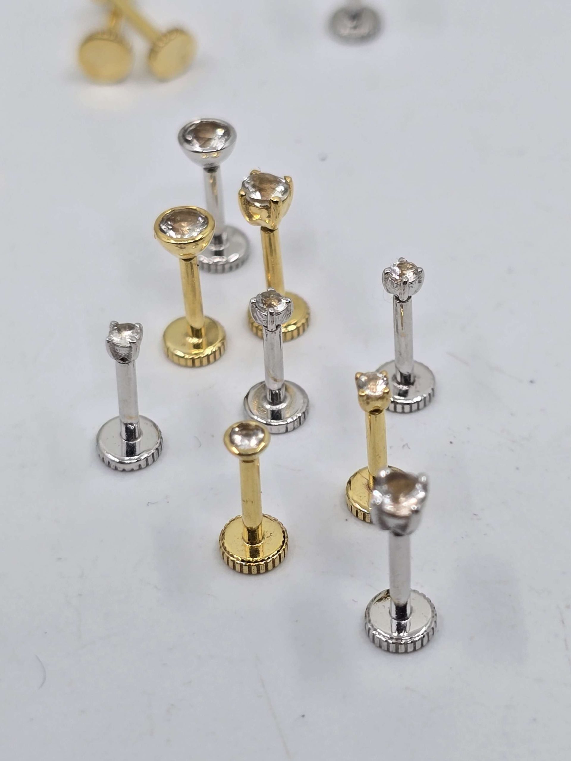 Each labret features a 5mm flat back post and a secure long threaded stud. Made with a 16 gauge pin, it ensures a snug, stable fit that stays in place while remaining gentle enough for daily wear.