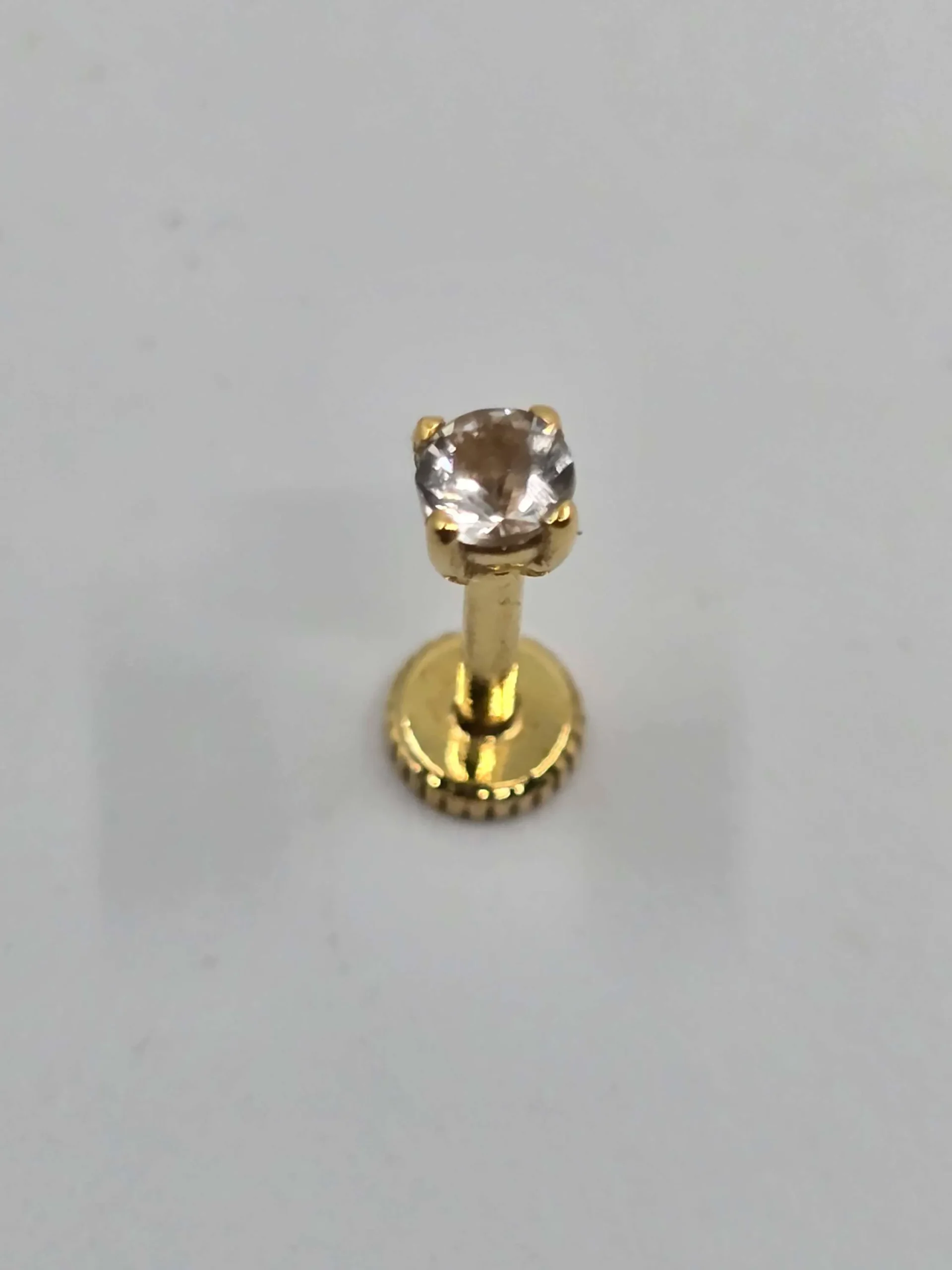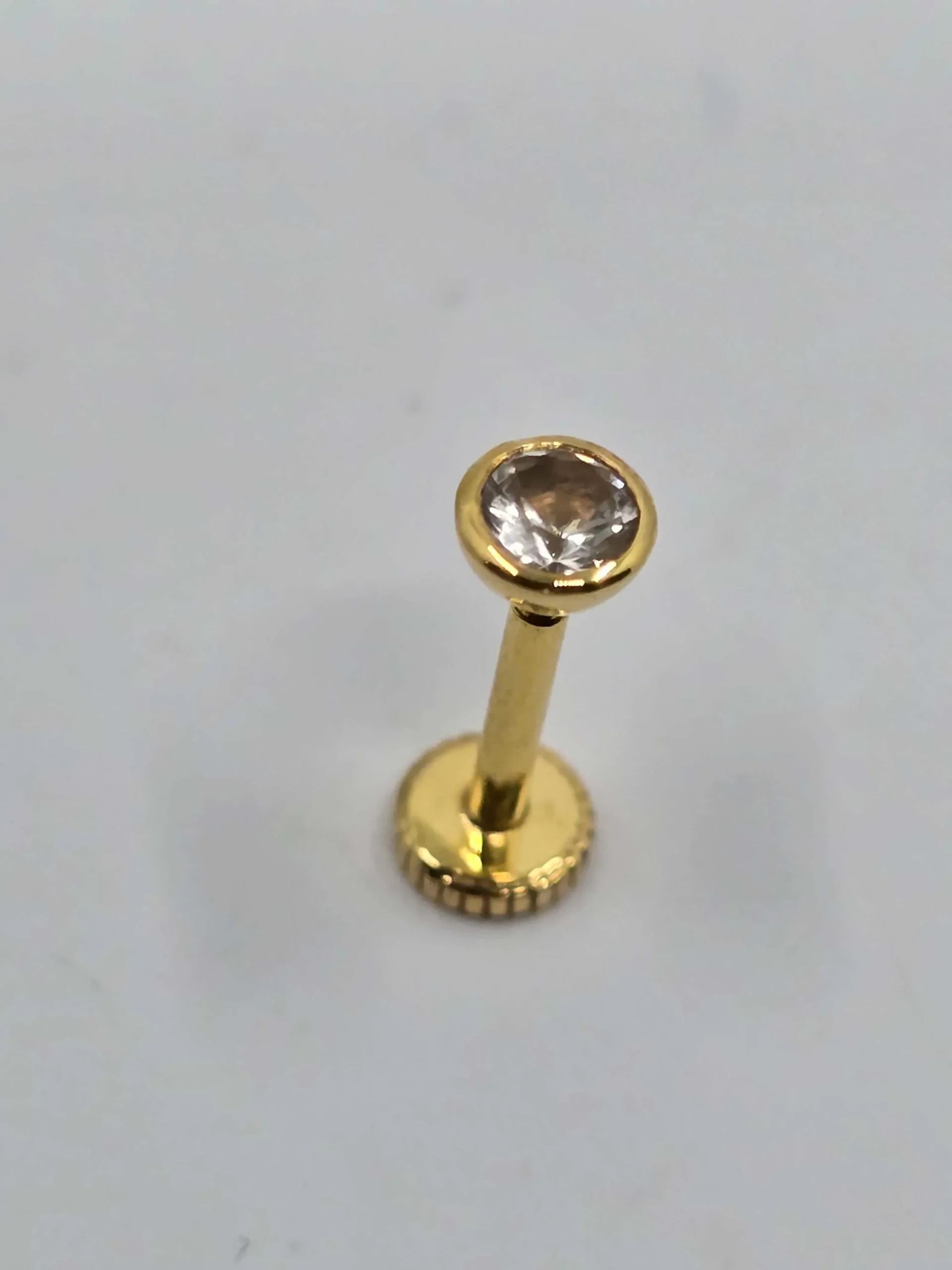 Perfectly sized for nose, conch, helix, Medusa, Monroe, or traditional labret piercings, this internally threaded labret combines comfort, durability, and fine design. Choose between a bezel or prong setting to suit your style, and select your stone size: 2mm or 3mm.