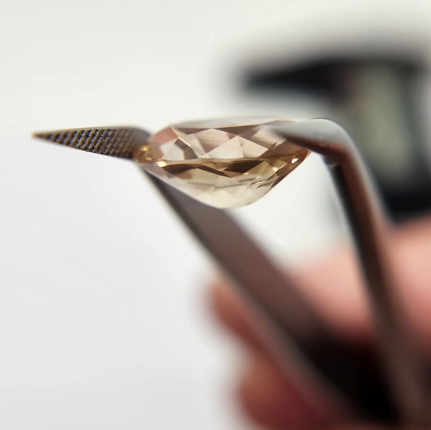 This stone measures 10mm and is cut in a spectacular brilliant pattern. The weight is 3ct.