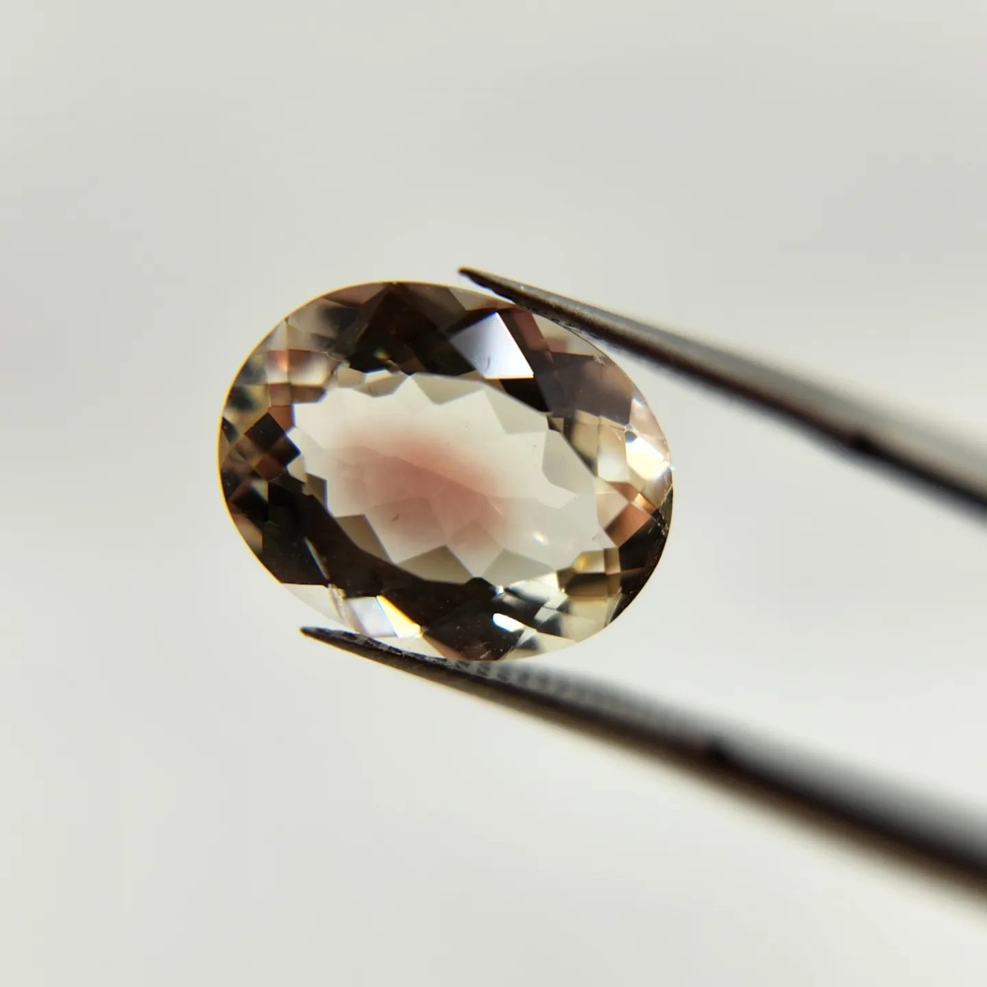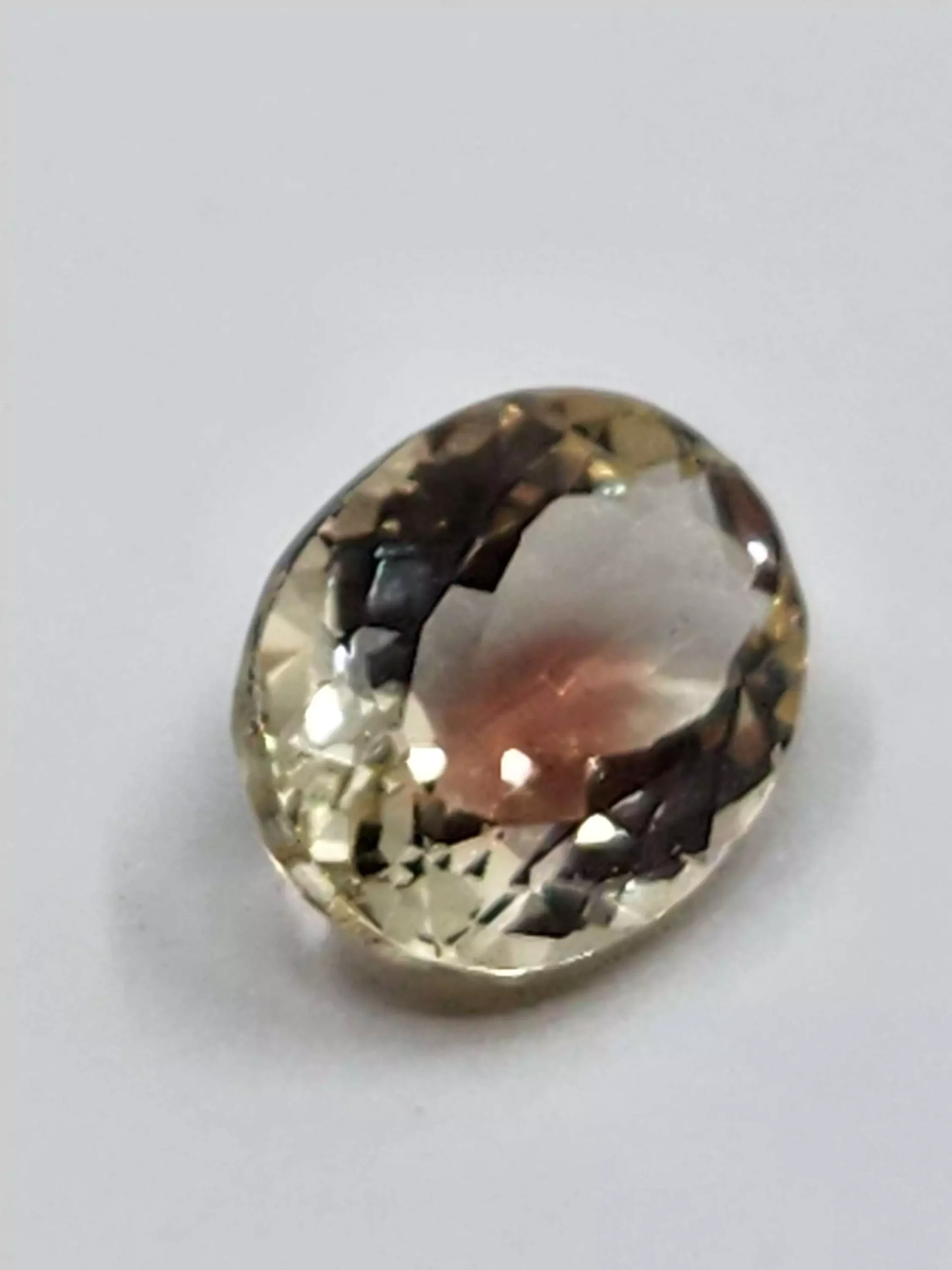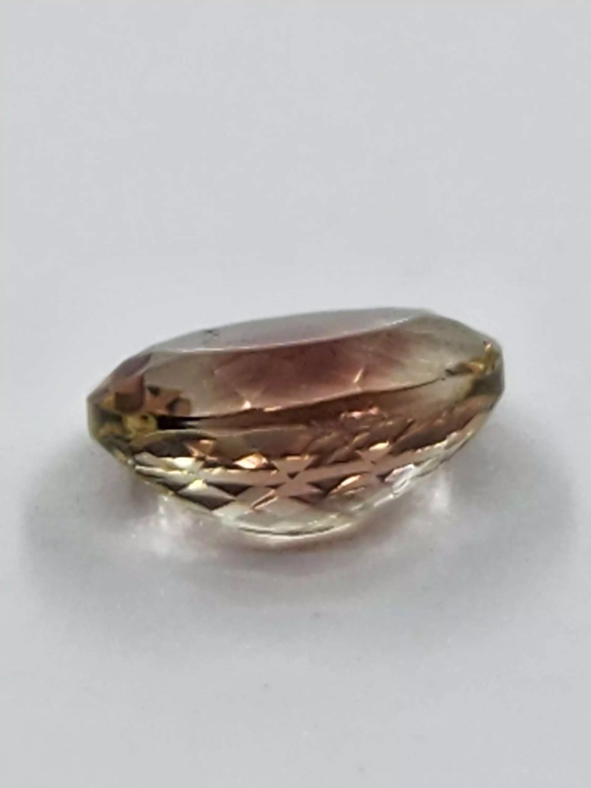 This stone looks a lot like a very expensive sunset tourmaline, but it's not. It's a bi-color Oregon Sunstone with shades of pink and gold.