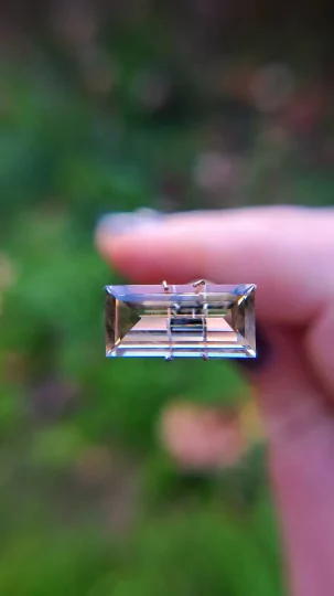 This stunning 4.27ct Oregon Sunstone features a baguette cut with glowing champagne and pale pink tones. Measuring 16×7.8mm, it’s the perfect size for a bold, elegant pendant—whether worn vertically or horizontally.