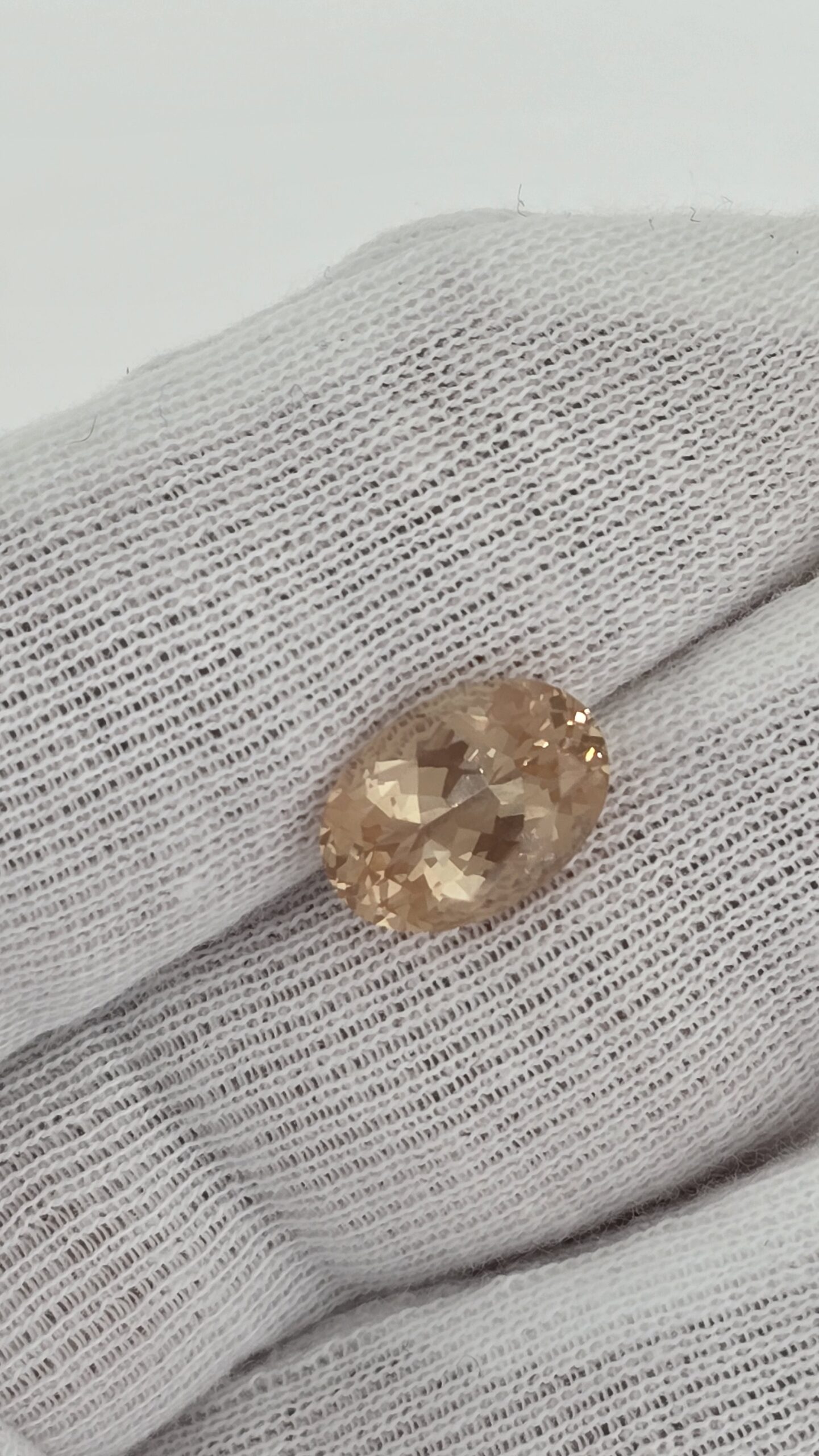 4.45ct Elongated Oval Oregon Sunstone – Peach with Sparkling Schiller