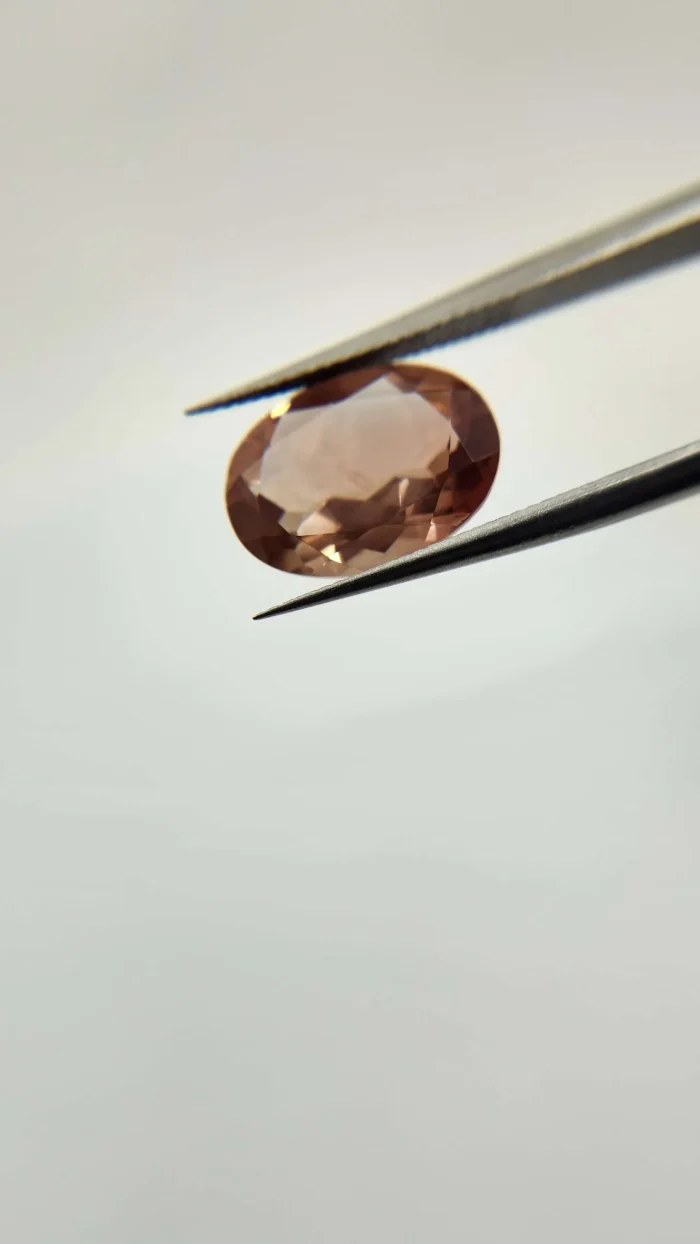 This stone looks a lot like a very expensive sunset tourmaline, but it's not. It's a bi-color Oregon Sunstone with shades of pink and gold.