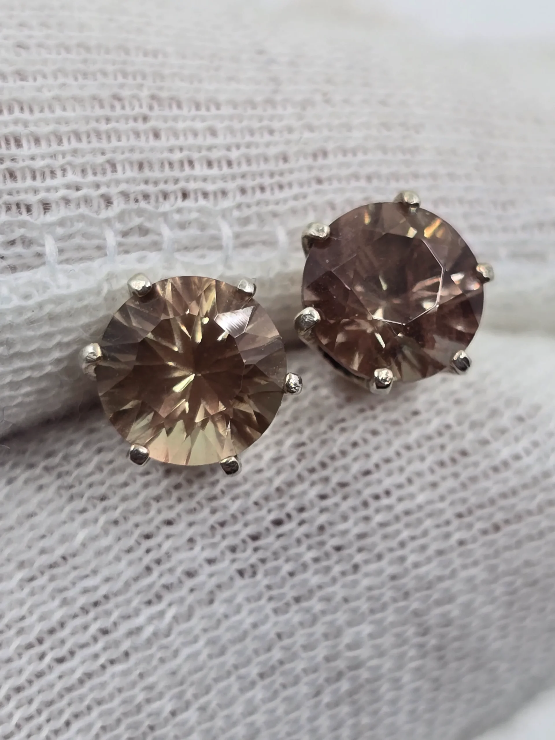 Here’s a great set of 7mm bicolor Oregon Sunstones set into a pair of simple and elegant sterling silver studs.