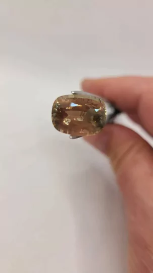 This exquisite 8.43 carat Oregon Sunstone was hand-mined directly by me from the famous Dust Devil Mine in Eastern Oregon. Measuring 14.4mm x 10.9mm, this large collector’s gem is a true showpiece of nature’s artistry.