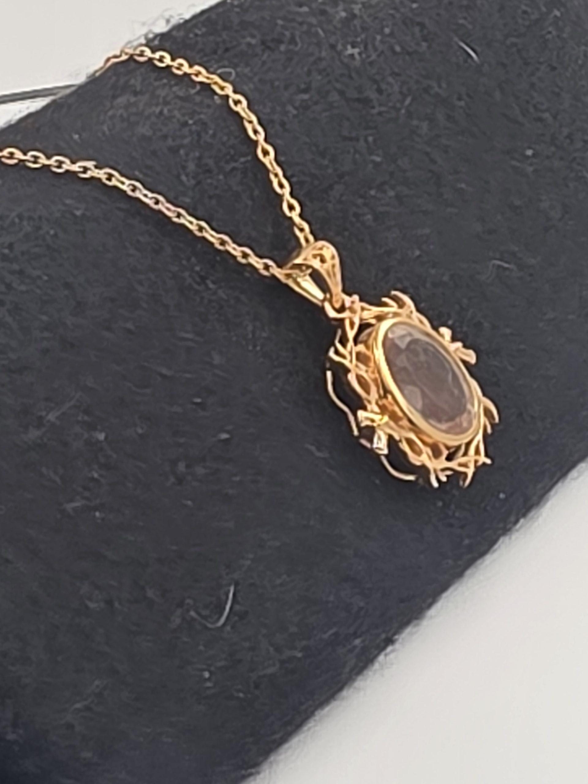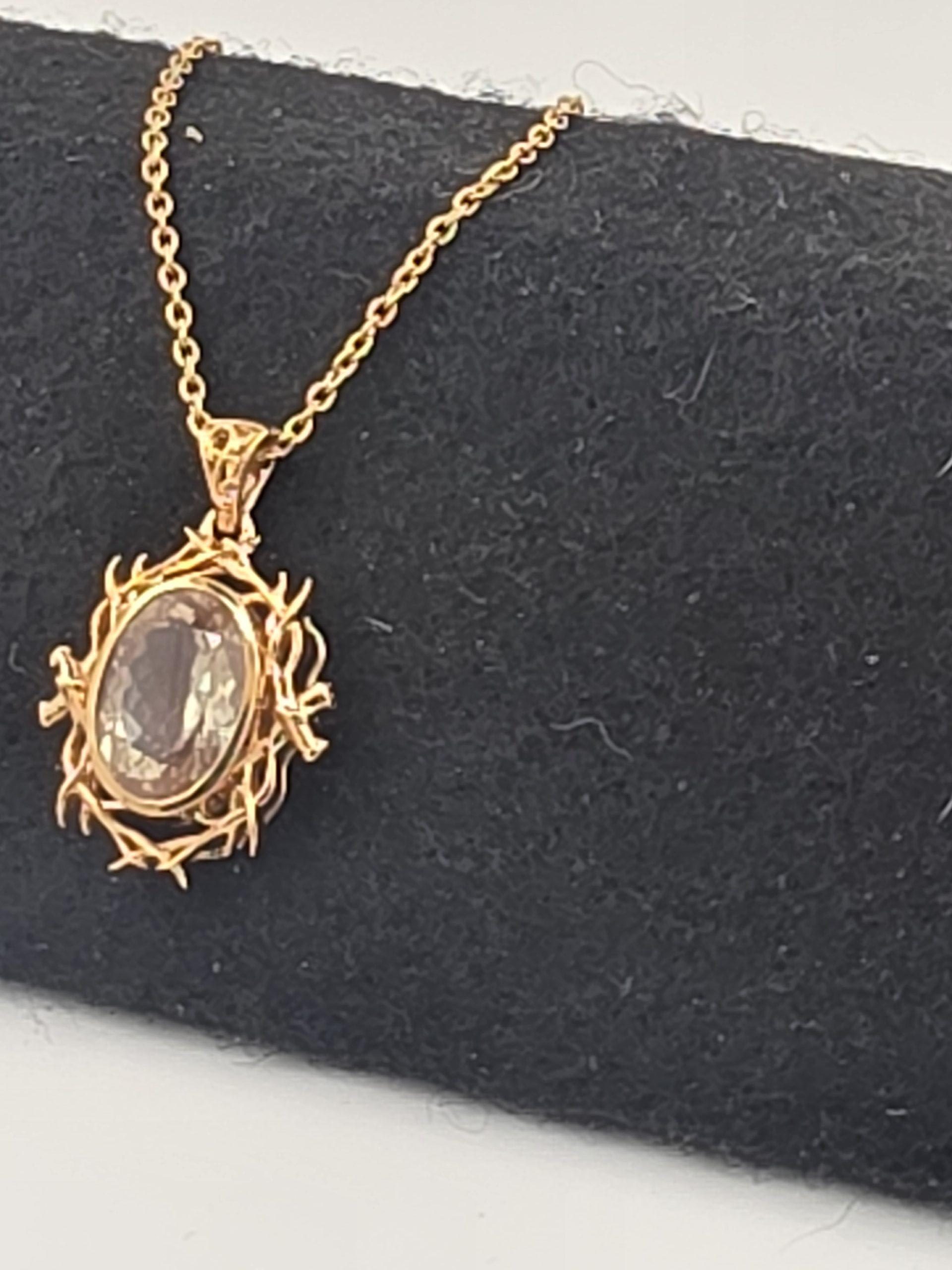 Turn heads with this striking Oregon Sunstone pendant, featuring an approximately 8ct gemstone that glows with a light coppery schiller. This is the kind of pendant that gets noticed instantly, and it did exactly that at the Tucson Gem Show, where the setting drew attention all show long.