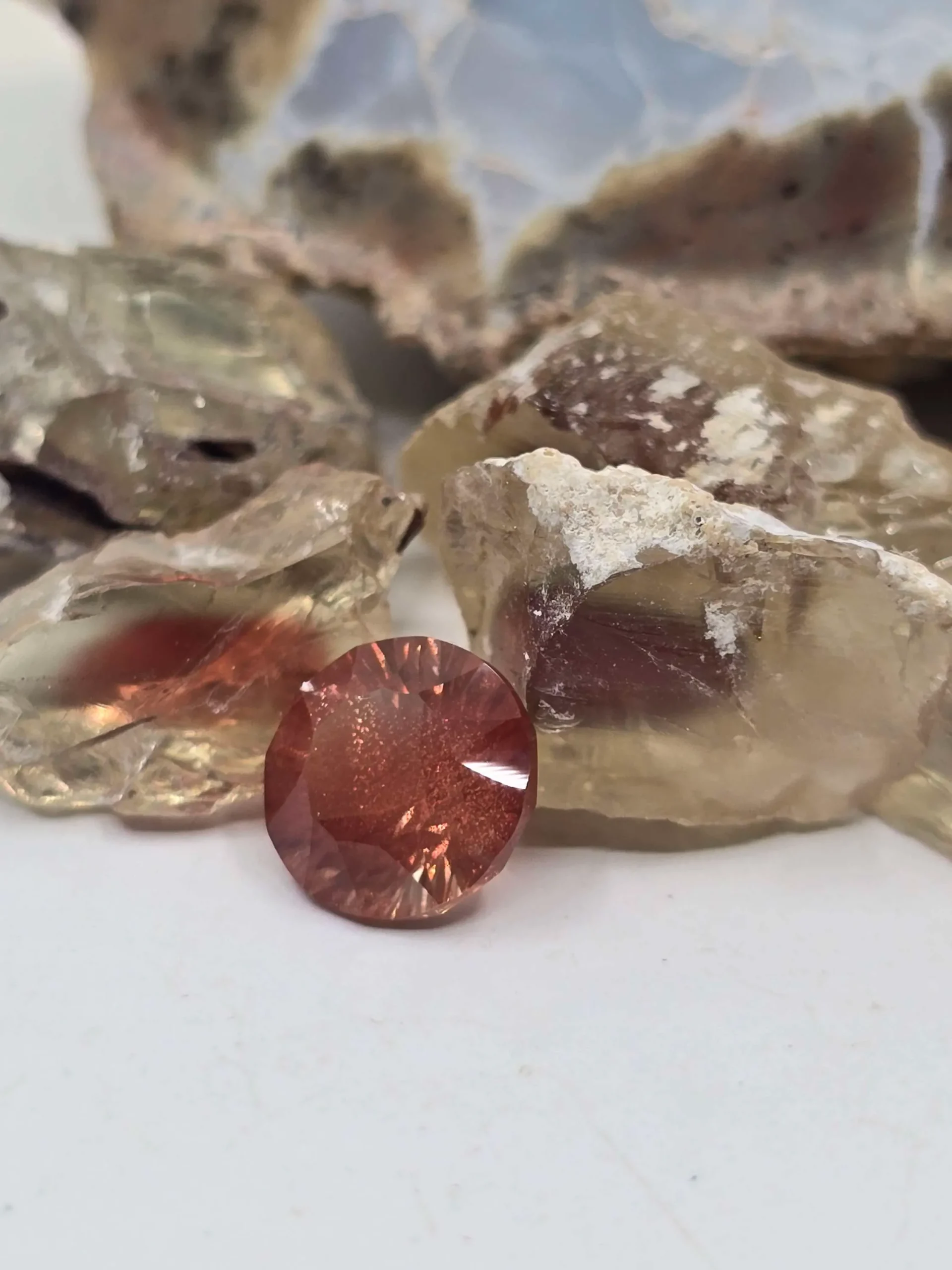 Beautiful Oregon Sunstone in AAA Red color with fantastic coppery schiller throughout.