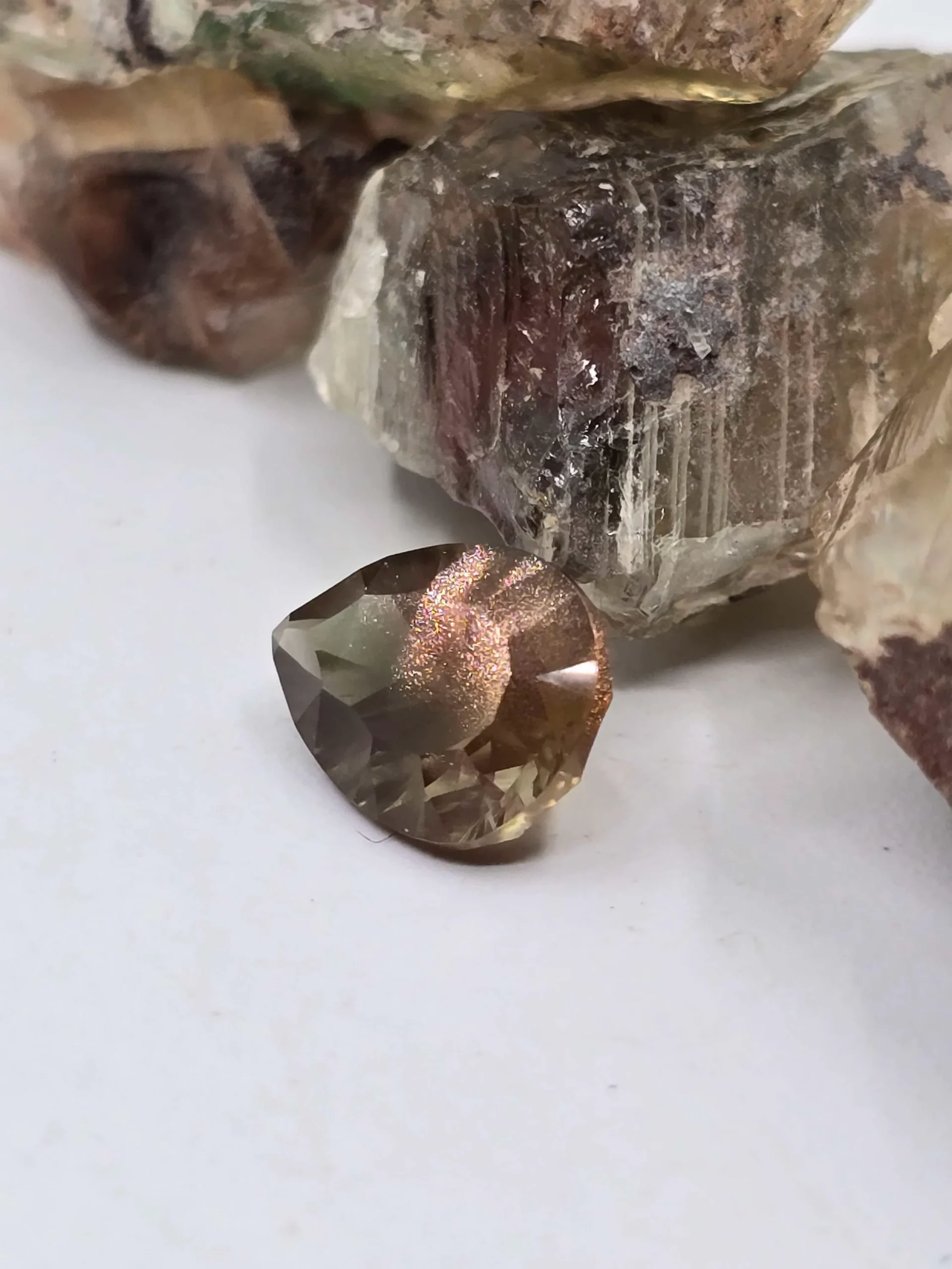 Rough from the high elevation of the Sunstone Butte mine and brilliantly cut to show a dazzling display.