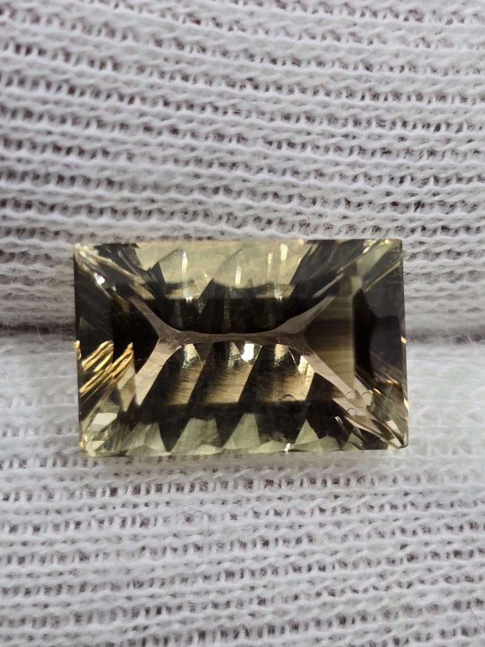 This one is cut in a rectangle with concave cuts on the sides to give it extra refraction. Photos just don’t do this stone justice.