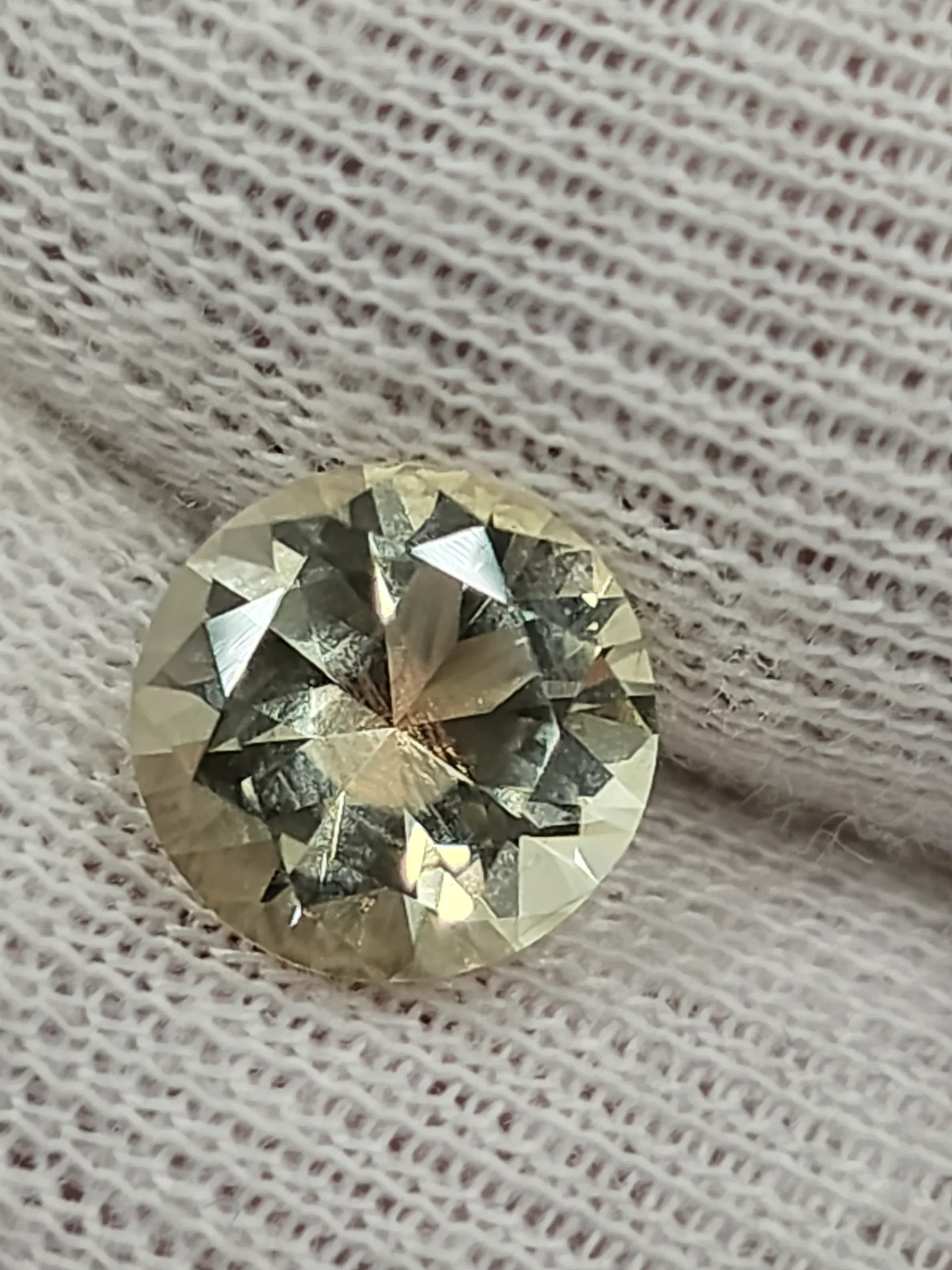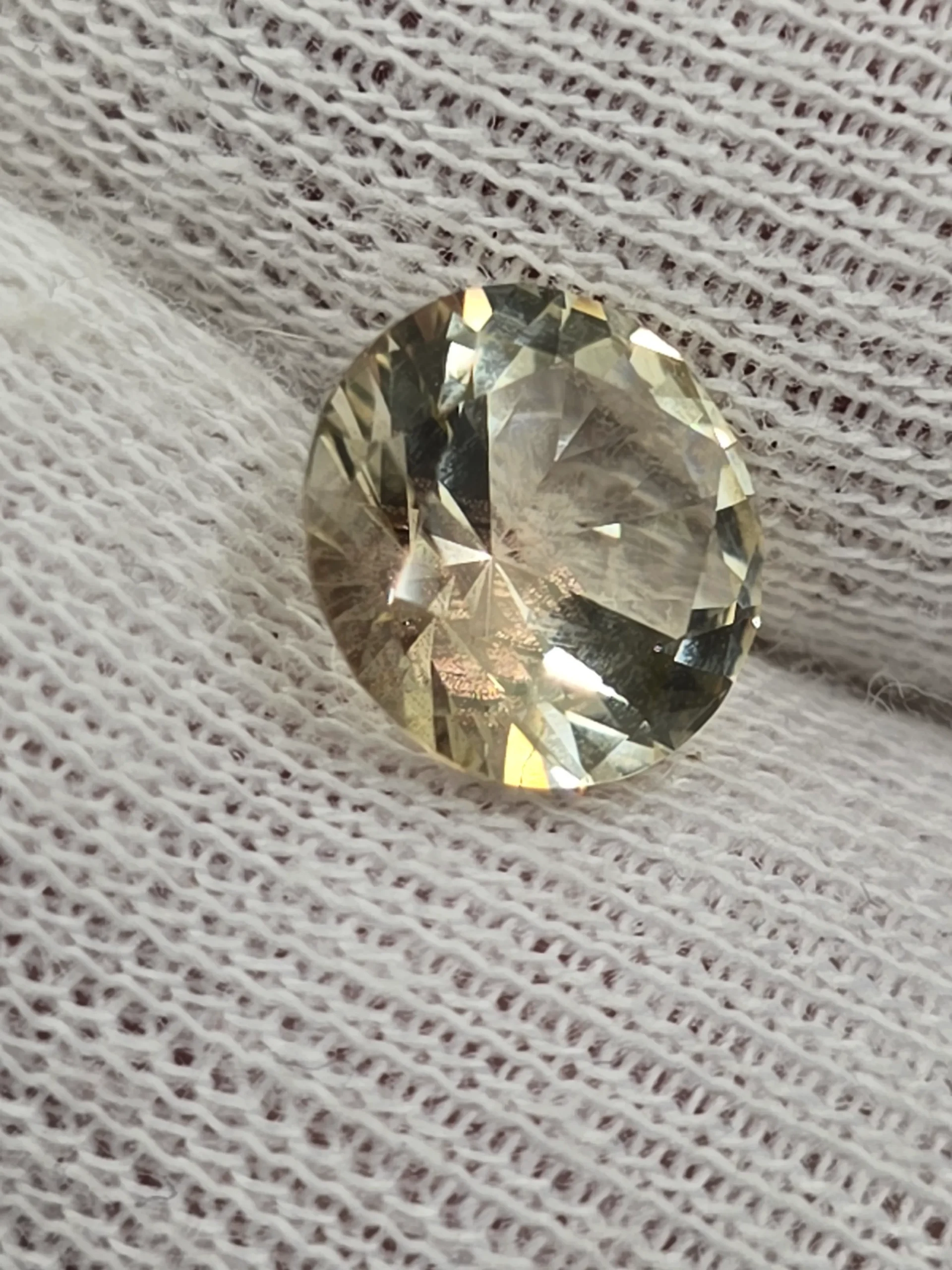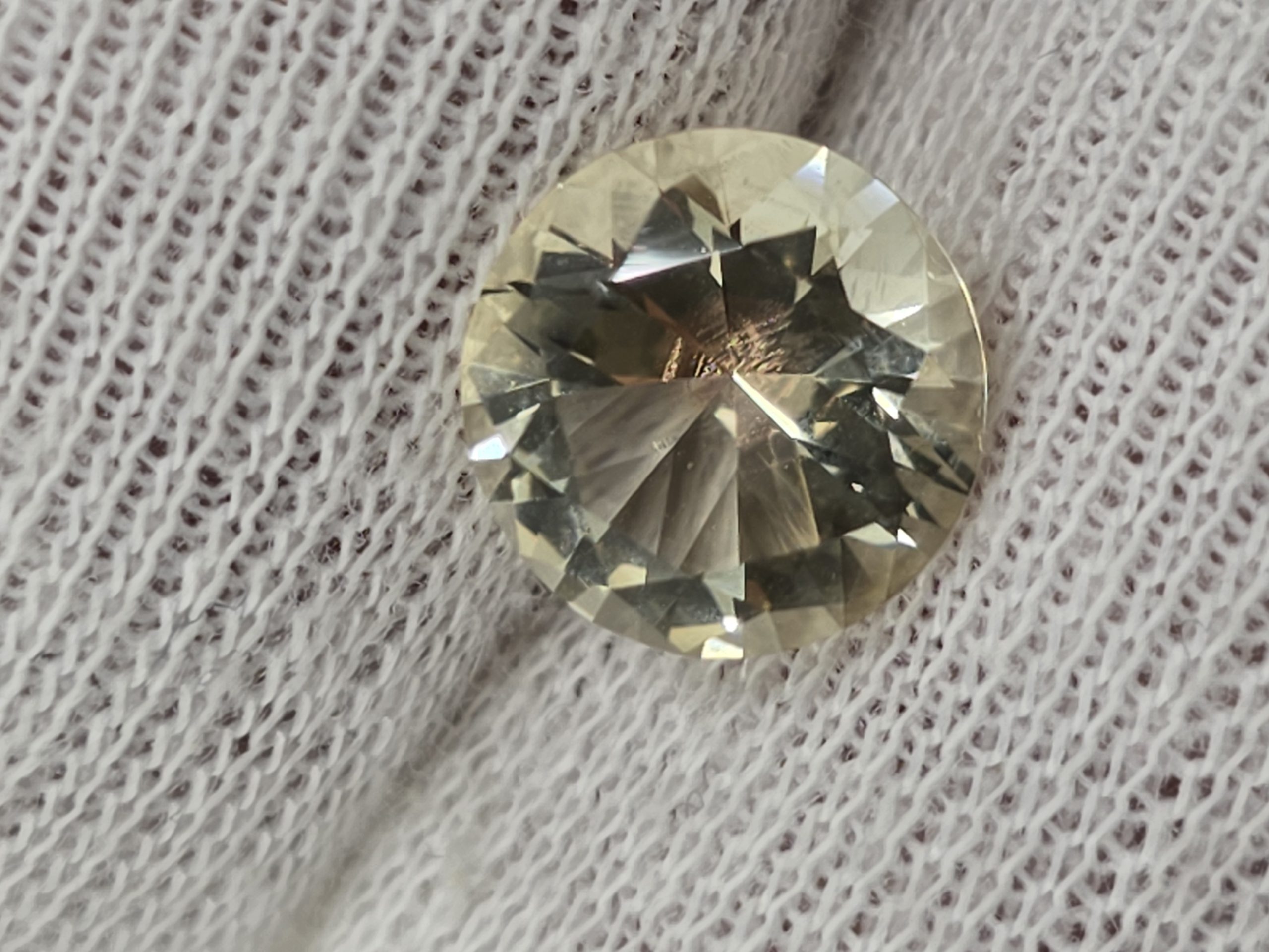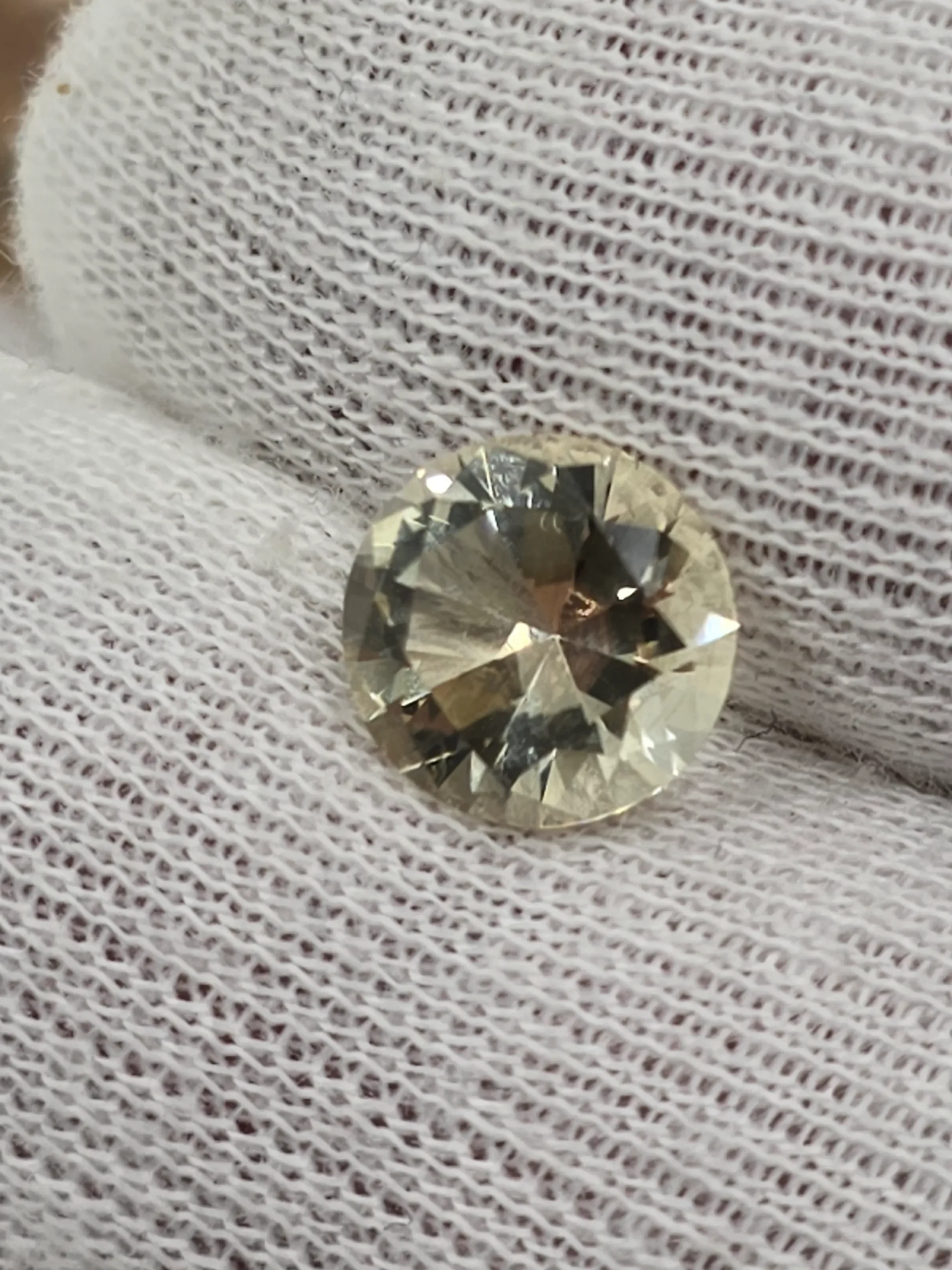 This stone measures 10mm and is cut in a spectacular brilliant pattern. The weight is 3ct.