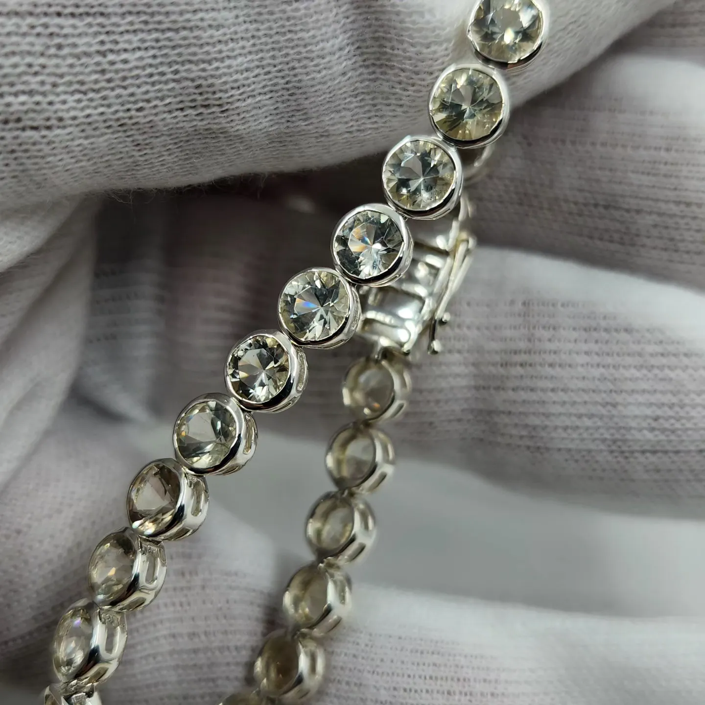 Champagne Oregon Sunstone Tennis Bracelet – 7″ Sterling Silver with Rhodium Finish, 30 Natural 5mm Stones