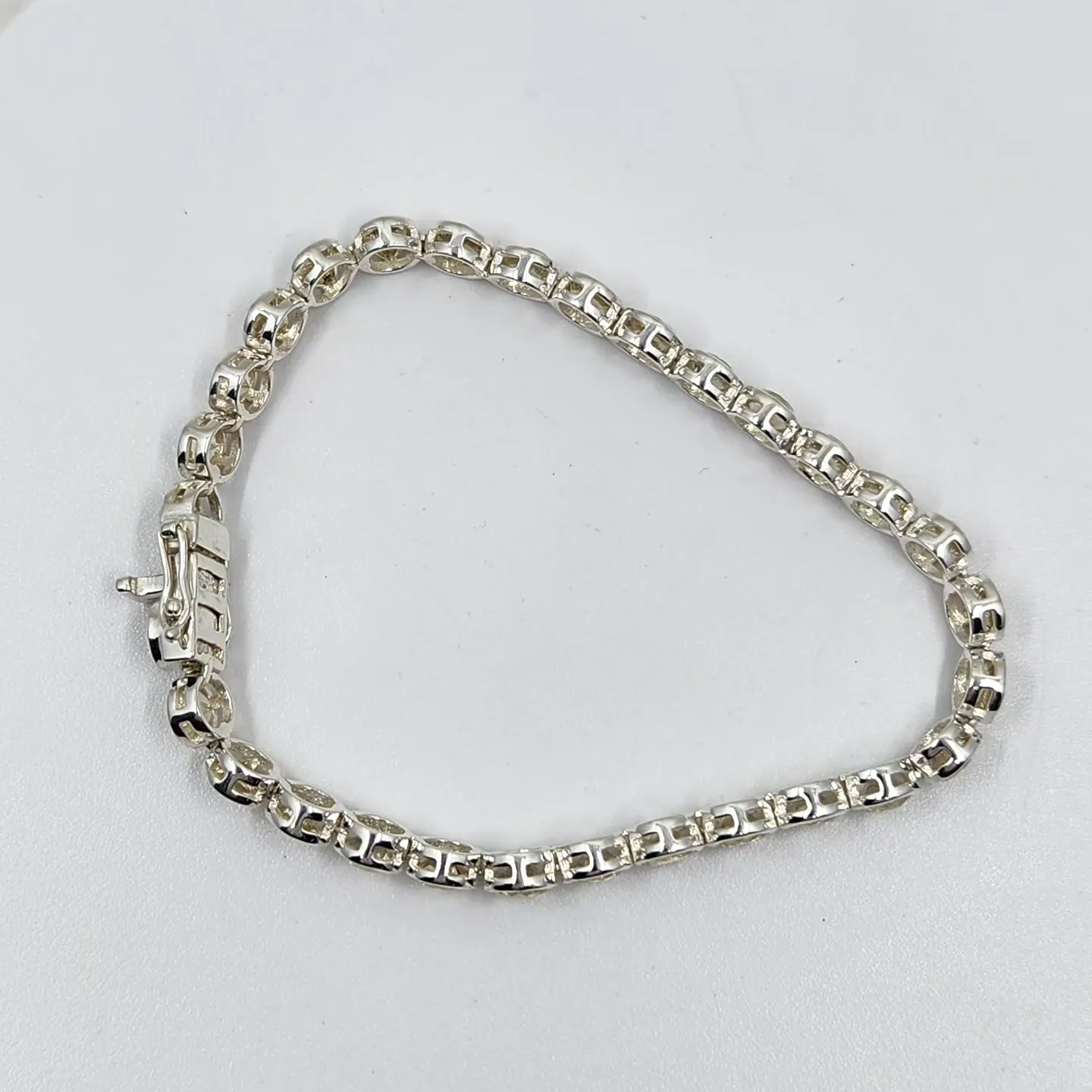 Crafted in sterling silver with a bright rhodium finish for added shine and durability, this bracelet showcases 30 genuine champagne-colored Oregon Sunstones, each measuring 5mm round. The warm, glowing tones of these natural stones complement any outfit, bringing subtle sophistication and sparkle to both casual days and glamorous nights out.
