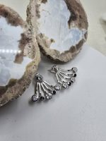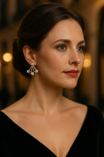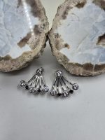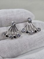 These earrings balance bold shimmer with everyday versatility. The icy brilliance of moissanite plays beautifully against the deep, glossy black spinel, while the fan-style jacket brings architectural flair. Switch between minimalist studs and eye-catching jackets to match your mood or outfit.