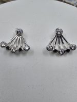 These convertible sterling silver jacket earrings feature brilliant 6mm moissanite studs with a detachable fan-shaped jacket of 4mm moissanite and black spinel stones. Wear them as simple studs or add the jacket for a bold, modern look. Rhodium plated for lasting shine and tarnish resistance.