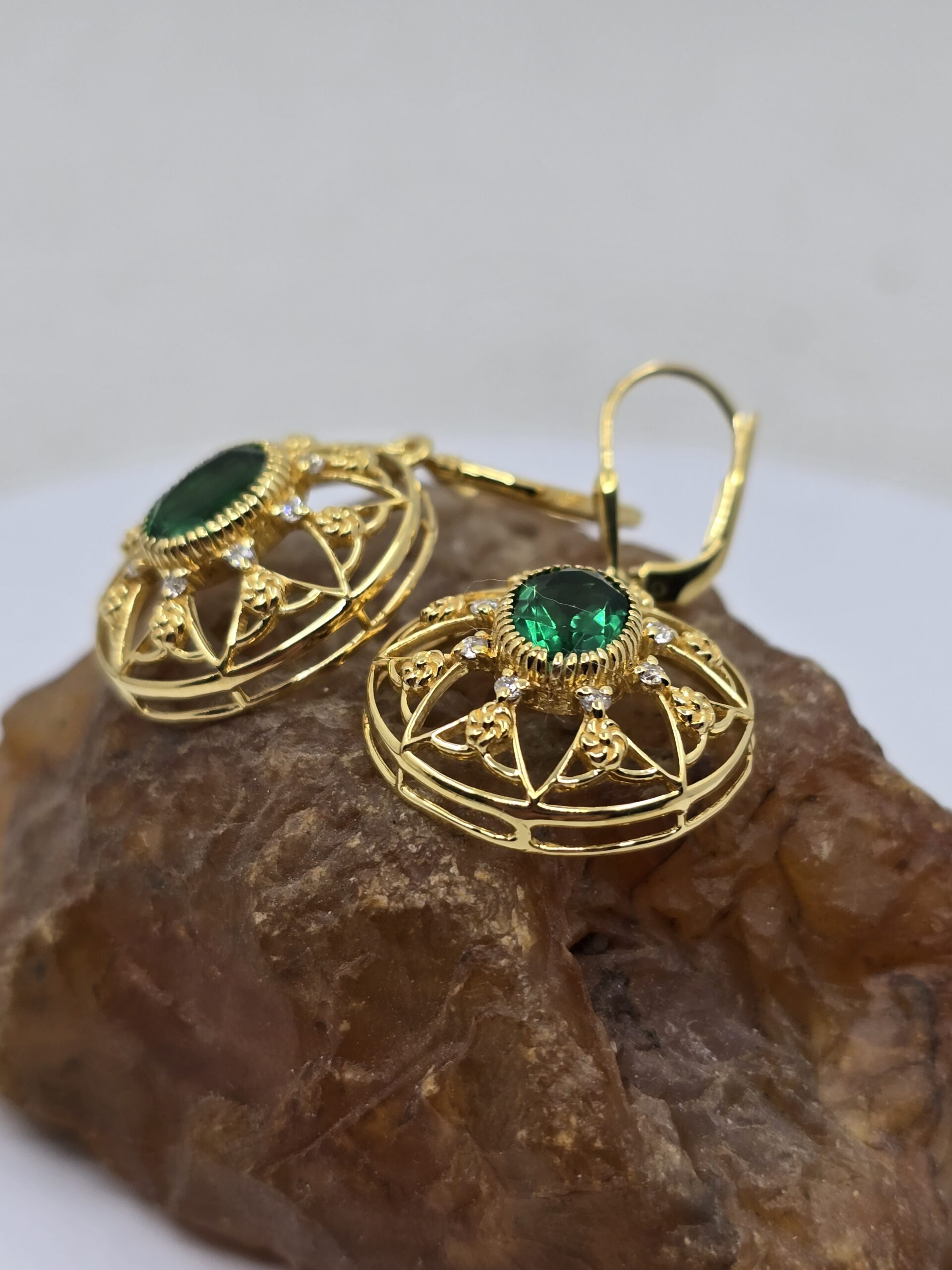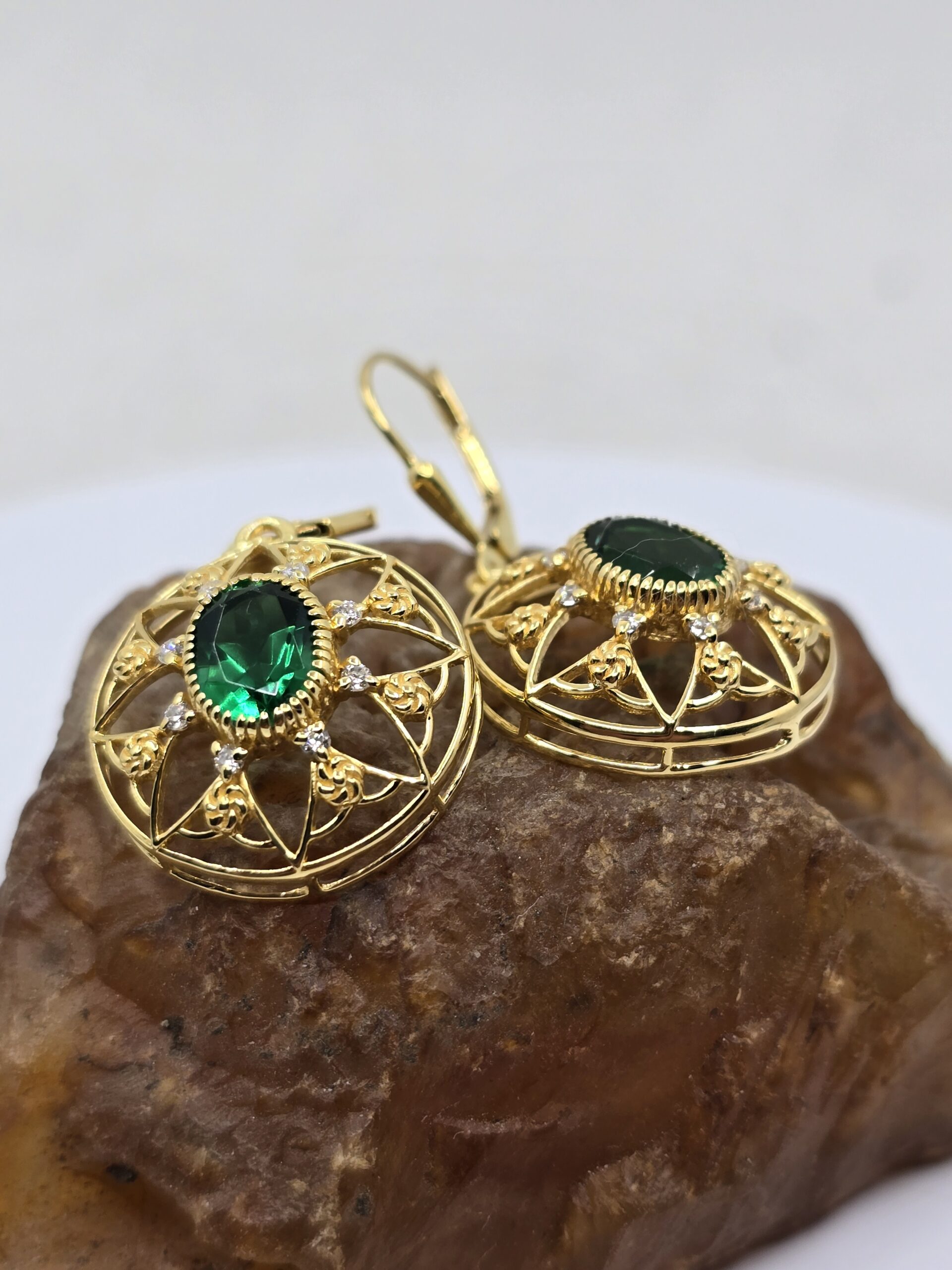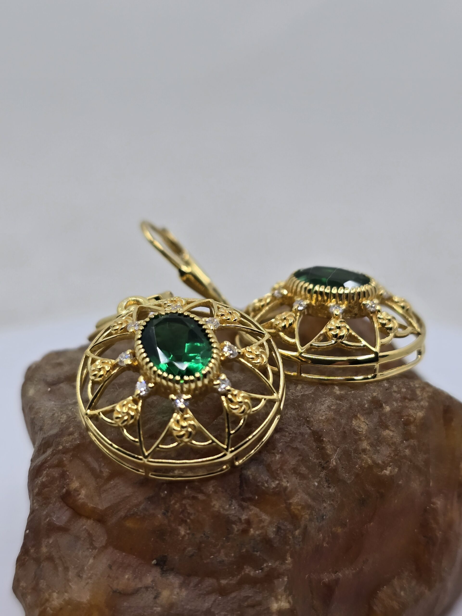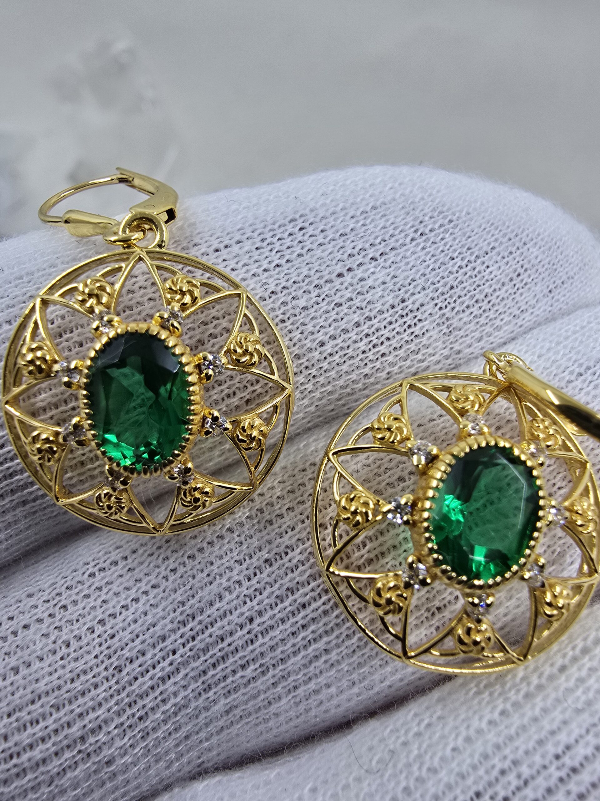 Emerald and gold filigree earrings