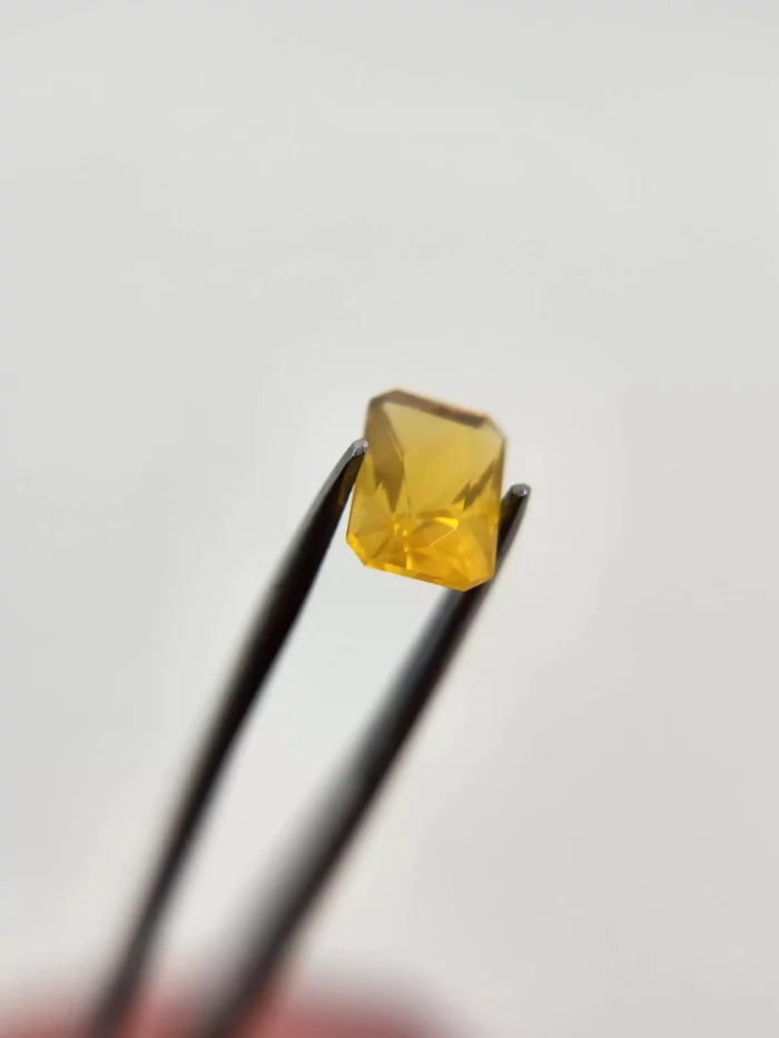 This Oregon Fire Opal has a beautiful color and cut. The facets gleam and glisten with a gold opalescent shimmer.