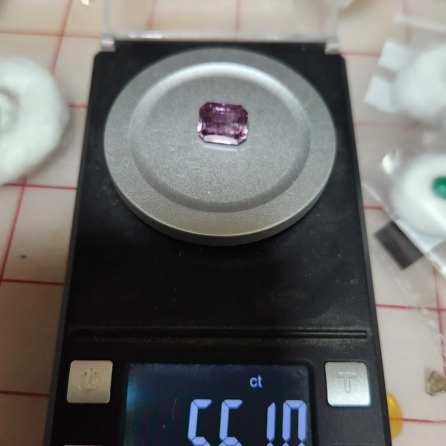 Stone weighs 5.6ct and measures 10.4×8.2mm and is 6mm deep. I’ve seen pink diaspore retailing for over $1000/ct, but my wholesale price is far less.