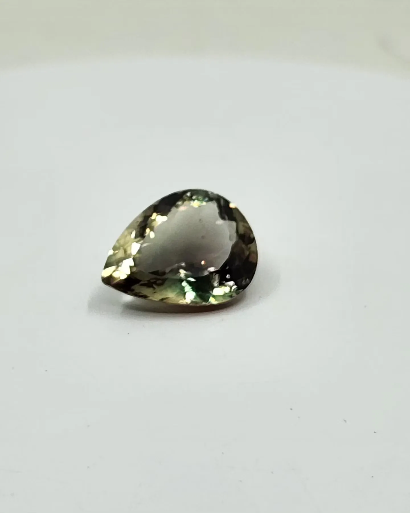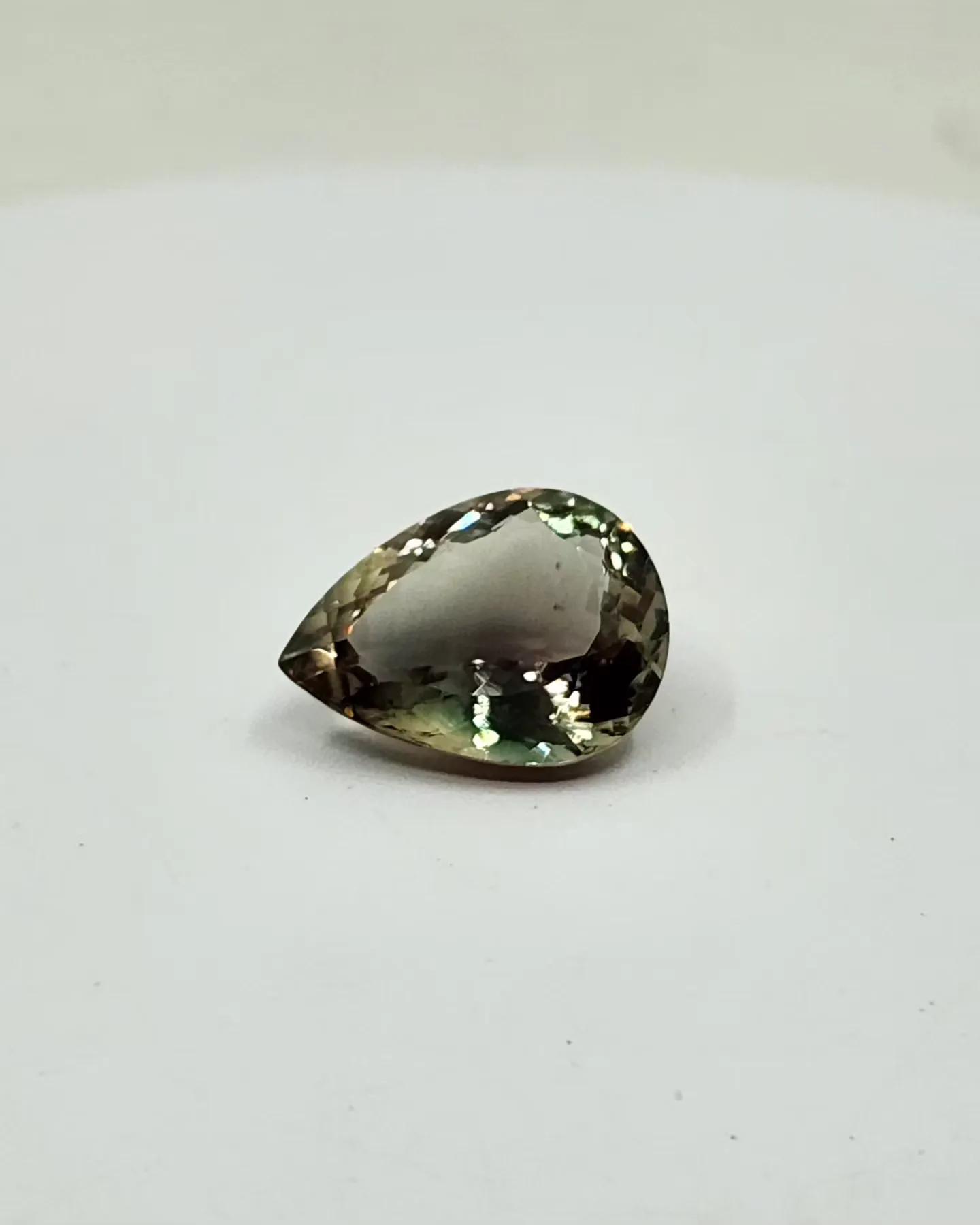 This bicolor green/gold Oregon Sunstone has that peachy copper “schiller” effect while remaining very clear. It’s a balancing act this stone pulls off so well.