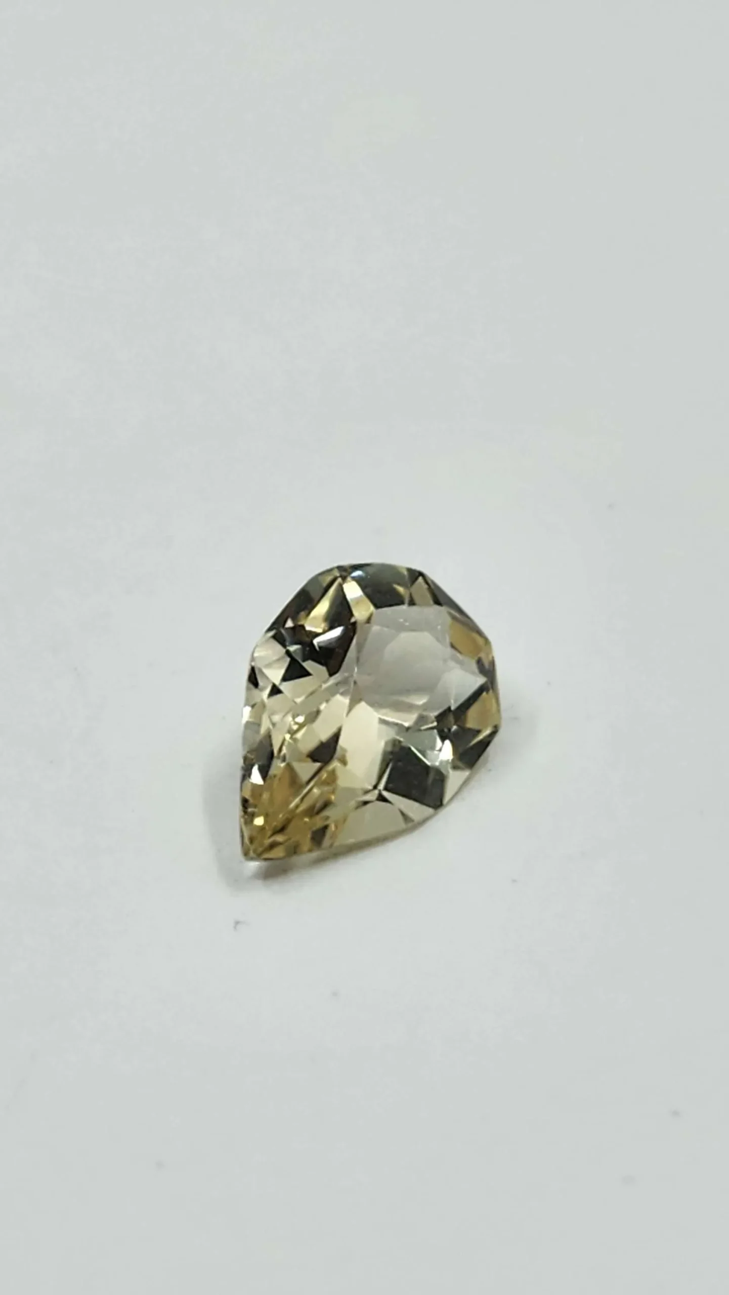 This 1.9ct Oregon Sunstone trillion is champagne in color with a little bit of copper schiller to add some extra sparkle. In the sun, you'll see shades of pink and green in it as well as that golden champagne color.