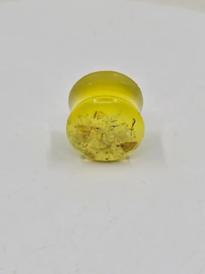 Add a pop of color and natural sparkle to your stretched ears with these solid double-flare ear gauges! Made from vibrant food-grade epoxy resin and real crushed Oregon Sunstone, each pair is one of a kind. Available in fun colors like Slime Yellow, Barbie Pink, Smoke Gray, and more. Sizes range from 6mm (2g) to 25mm (1″). Handcrafted in the USA by RoseGemShop.