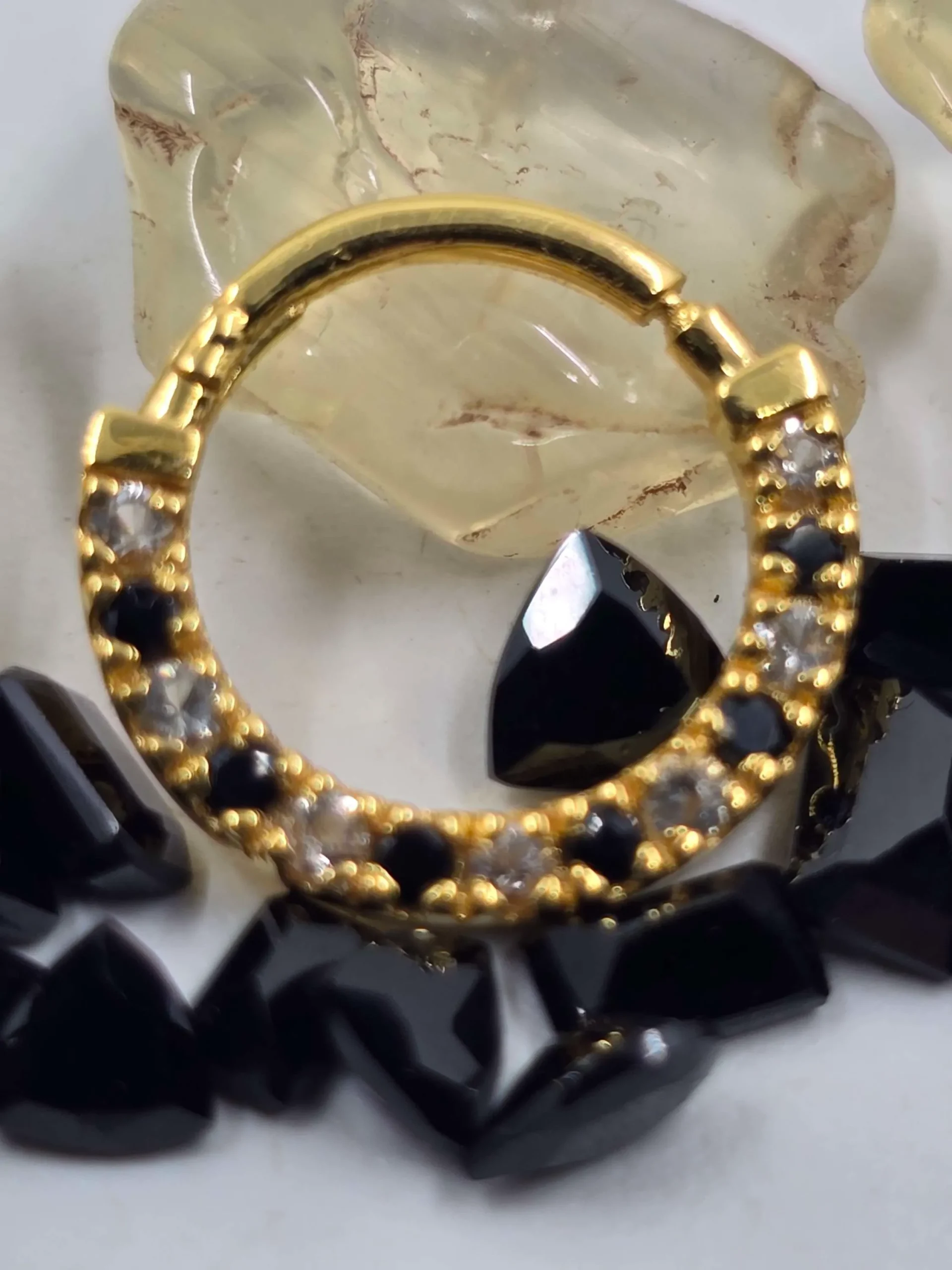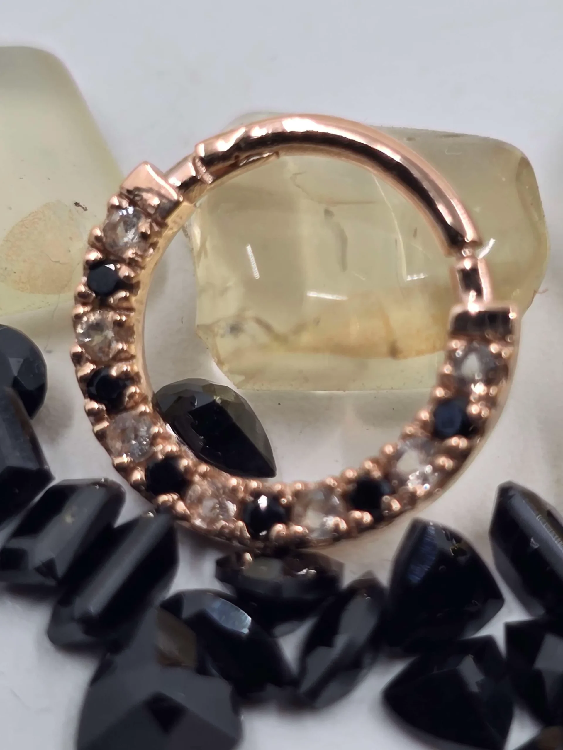 “Parvati” 14k Septum or daith clicker with Oregon Sunstone and black spinel