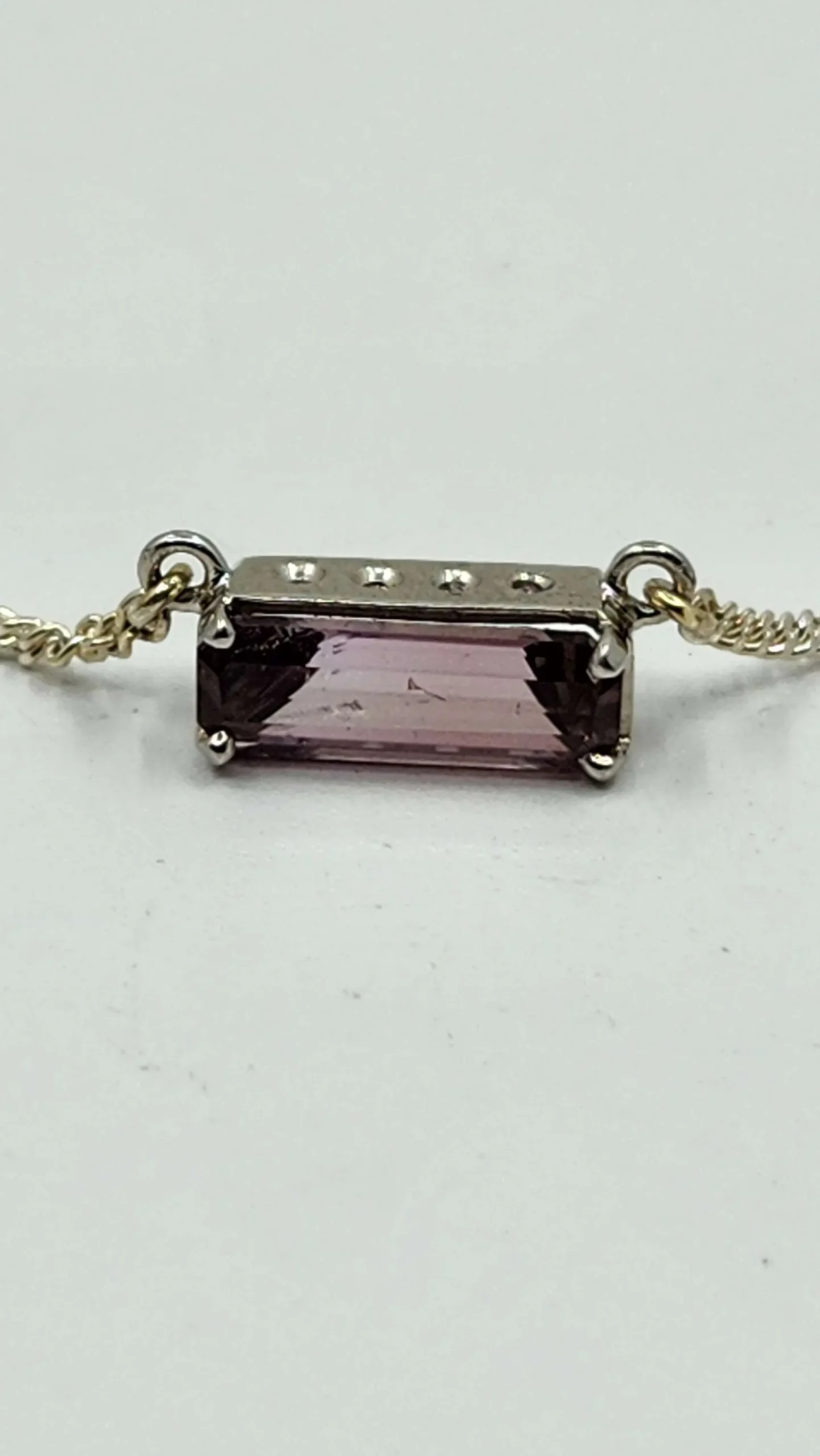 This “East/West” pendant with a 2.24ct pink diaspore is set in 925 sterling and includes the 18″ sterling chain. Its elegant beauty will enhance any outfit.