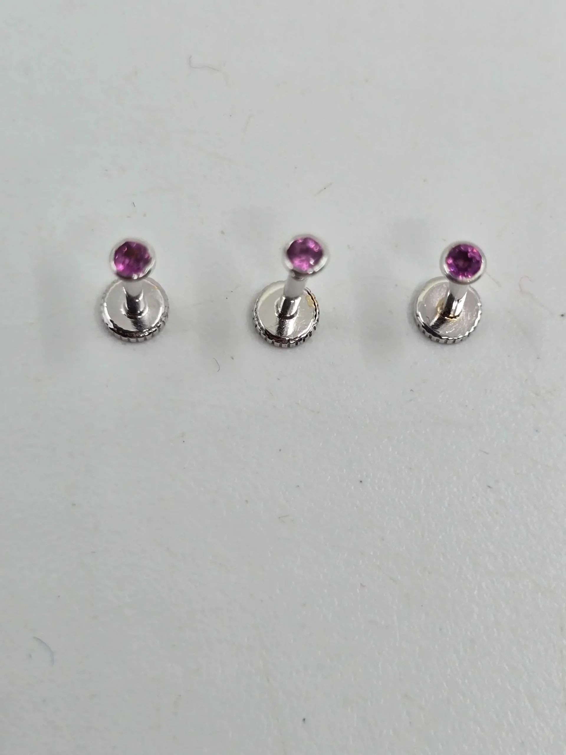 Each labret features a raw-cut pinkish-purple gemstone sourced from the rich earth of Madagascar. The natural texture and vibrant color of the stone give it a raw, organic charm — making each one a tiny, wearable work of art.