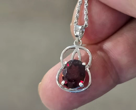 Rhodololite Garnet pendant set in 925 silver with 20″ chain