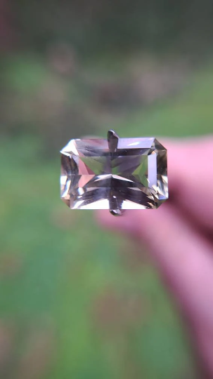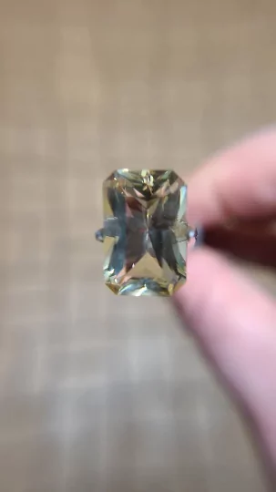 Learn more about our Custom Jewelry Design Process8.46ct Emerald Cut Oregon Sunstone – Champagne with Green Highlights (15.6×10.4mm)
