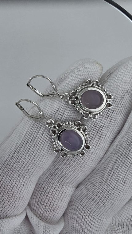 Holley Blue Agate Cabochon Earrings in Sterling Silver – Leverback Dangle Earrings